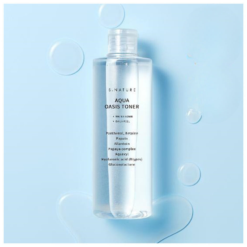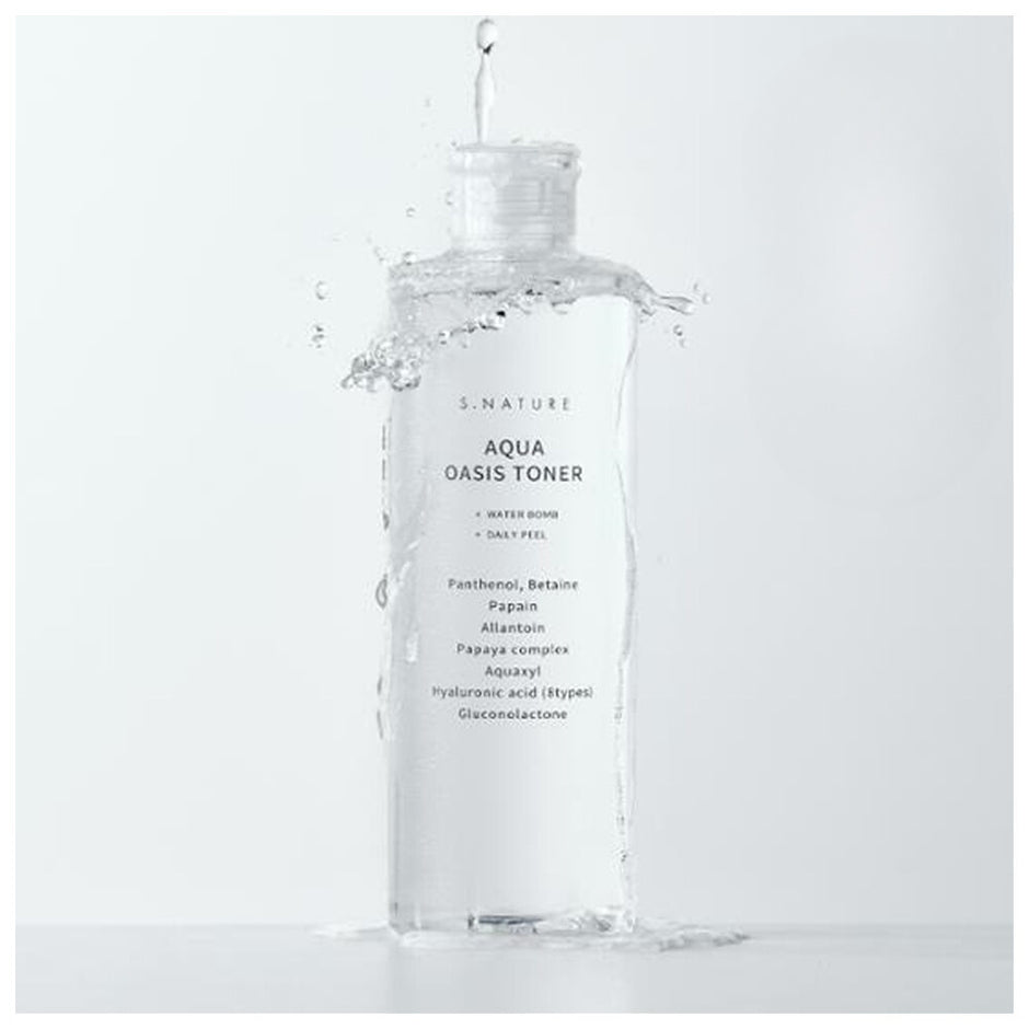 Awaken your skin with a wave of hydration. The S.NATURE Aqua Oasis Toner is a gentle but powerhouse formula crafted to deeply hydrate, refresh, and lightly exfoliate – all without harshness. Perfect for all skin types, including sensitive, dry, and combination skin, this toner delivers a radiant, plump complexion by restoring moisture and refining texture.